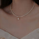 • Centerpiece: Creamy white pearl held in an open gold circle pendant
